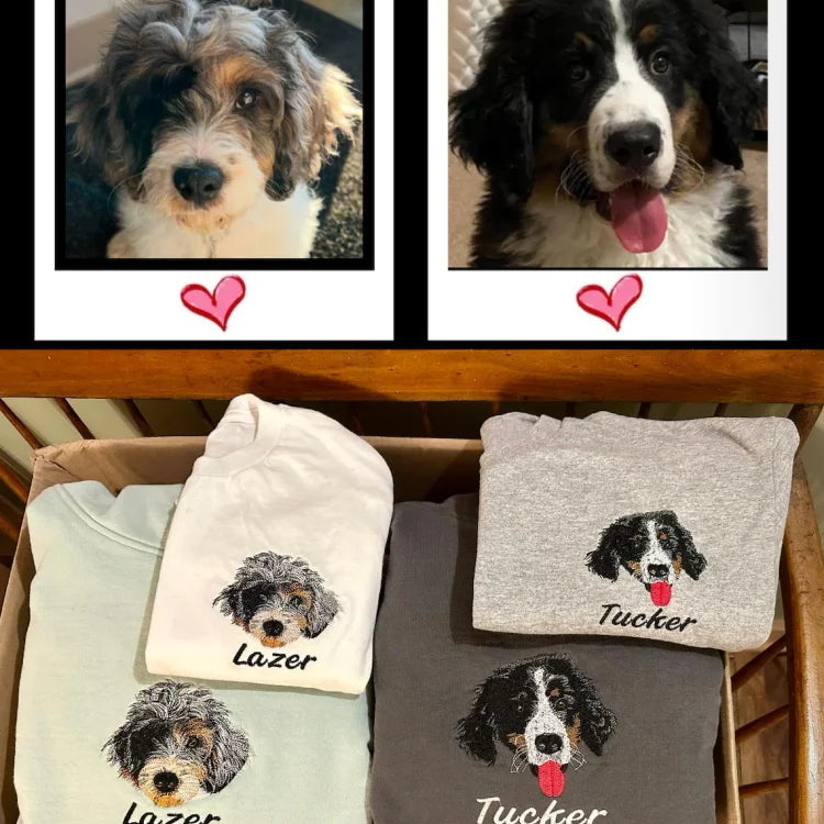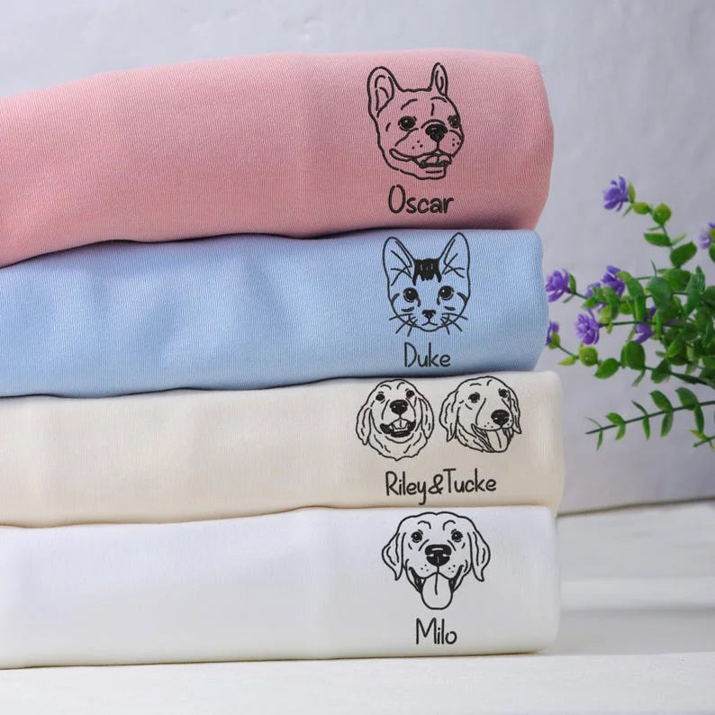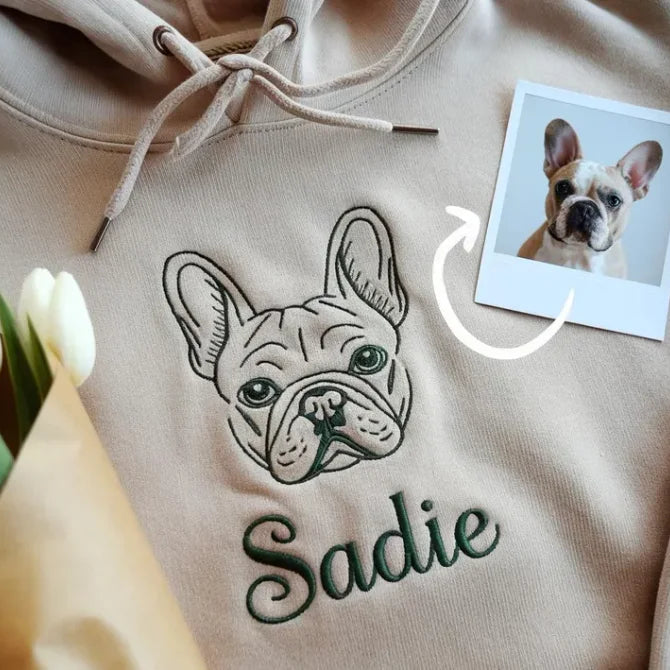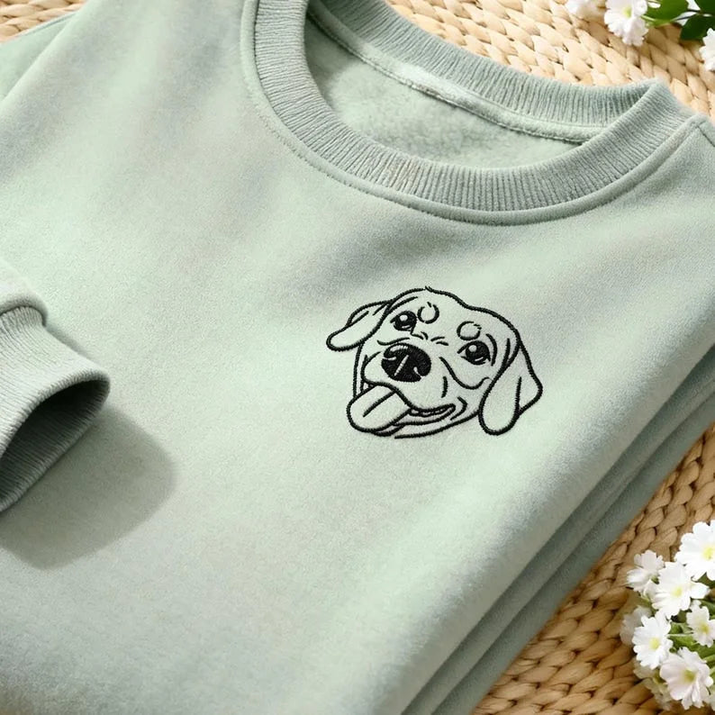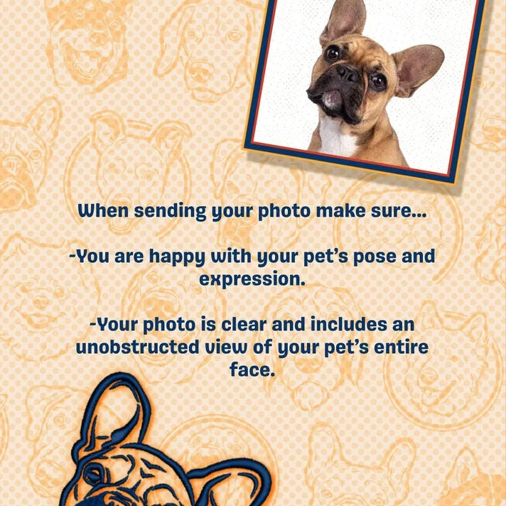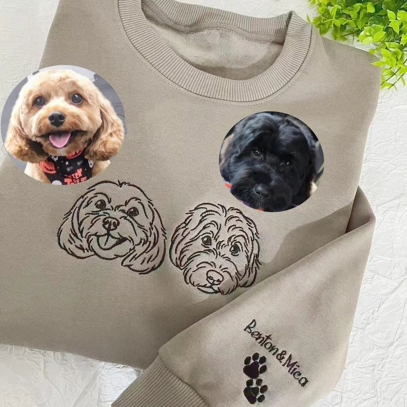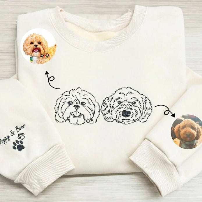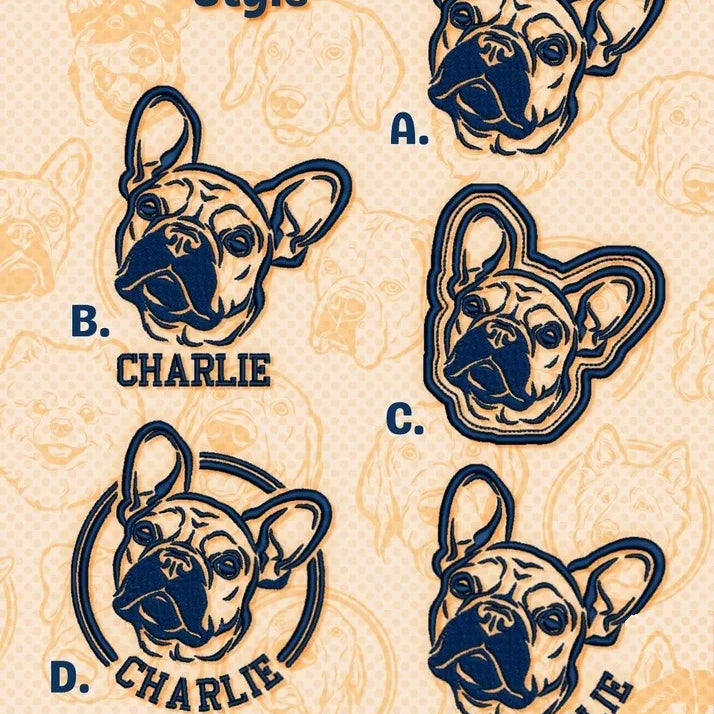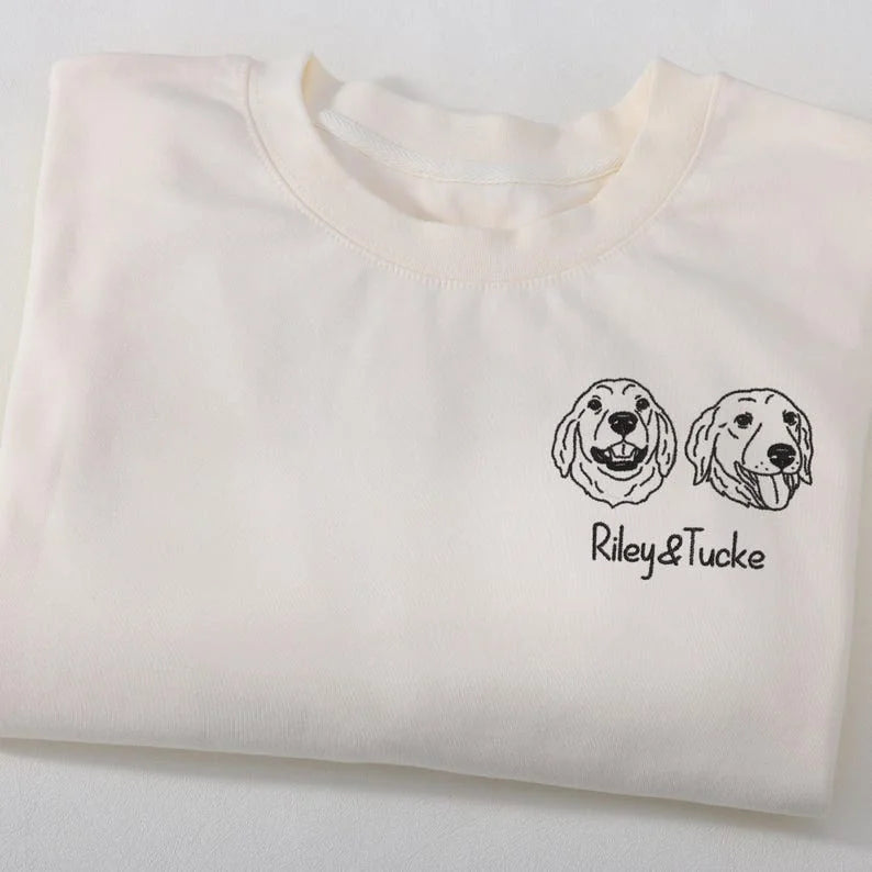 Ogni ricamo inizia con uno schizzo disegnato a mano dal nostro designer, catturando i tratti unici del tuo animale.