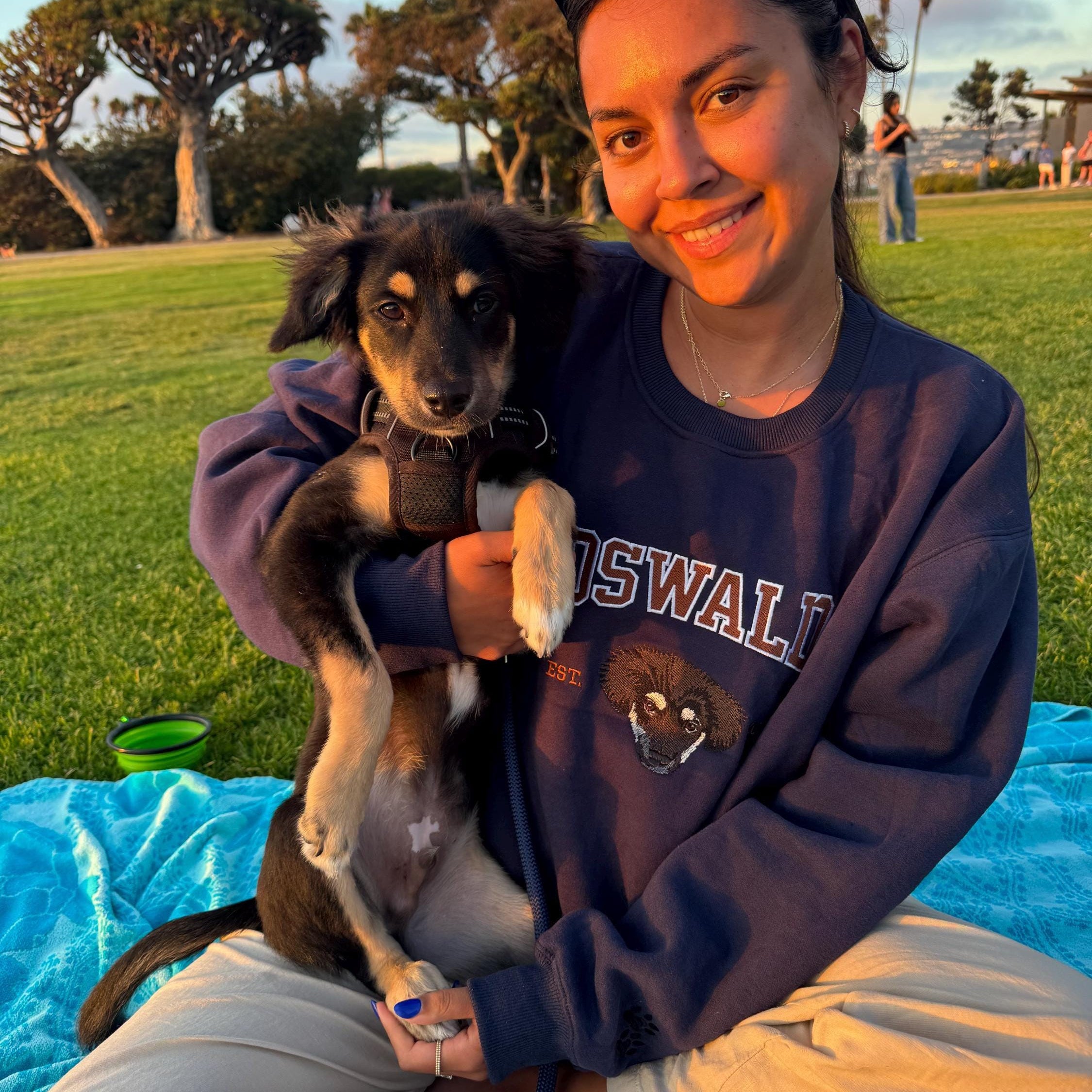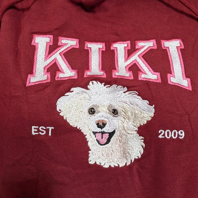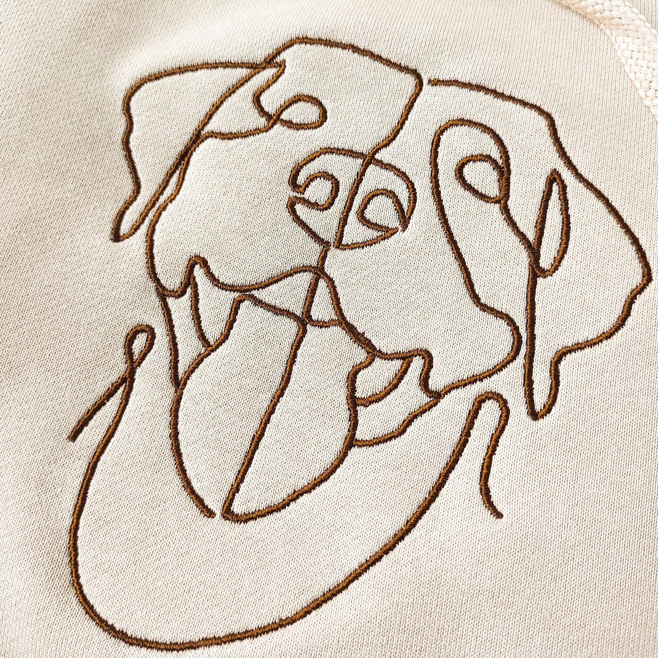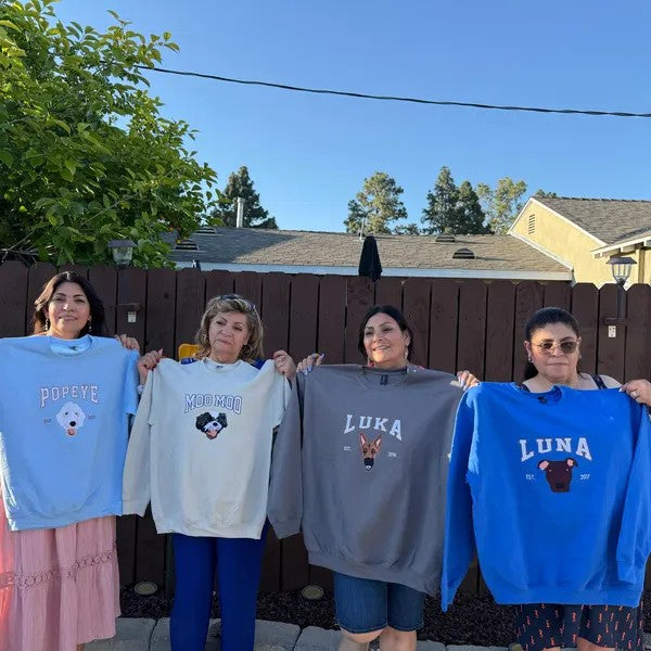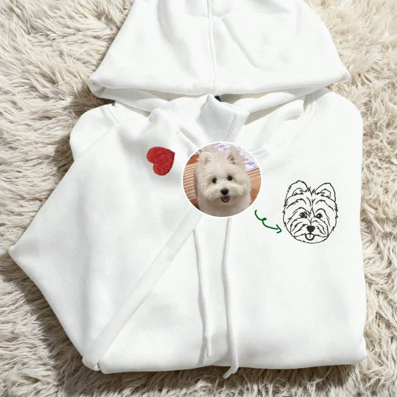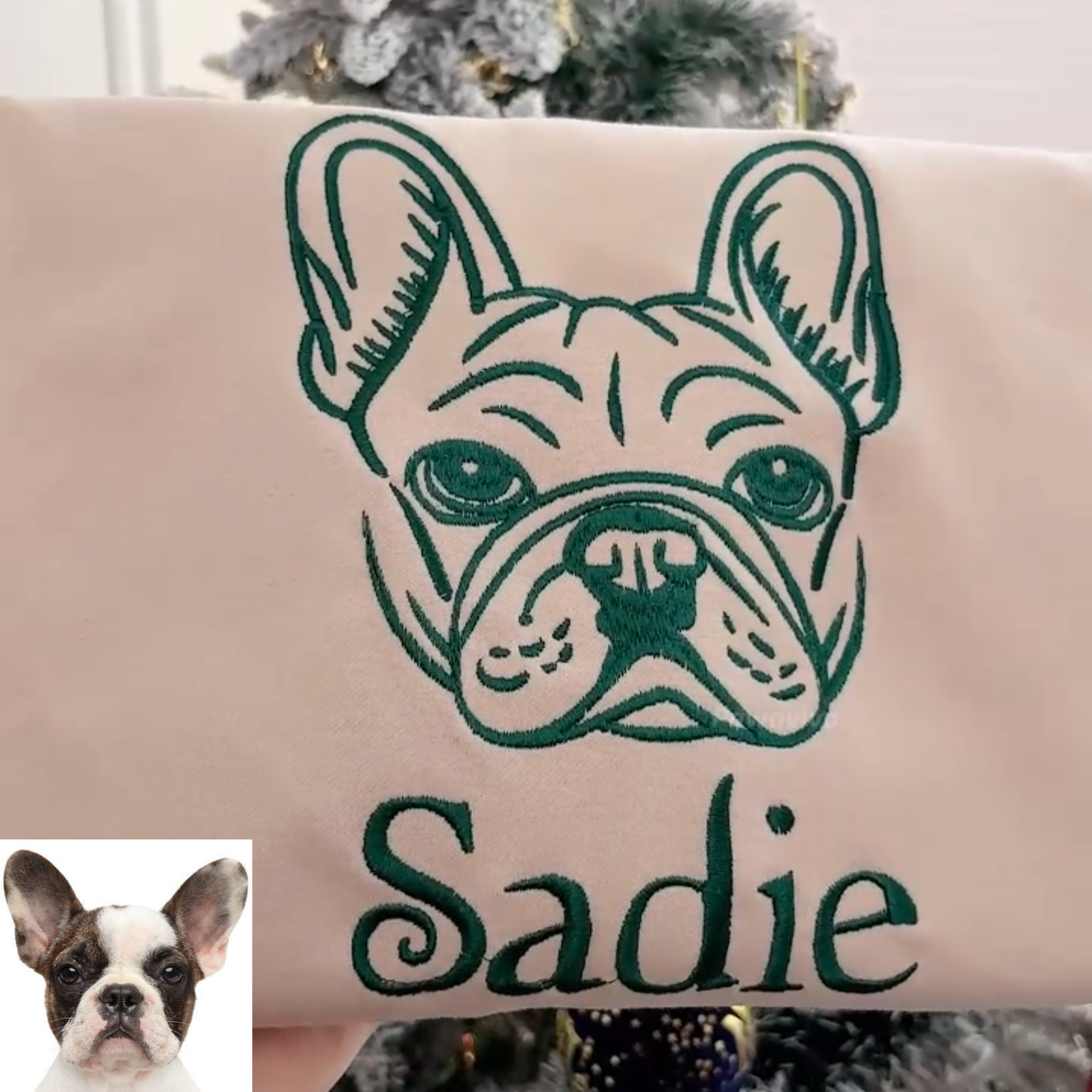 Ogni ricamo inizia con uno schizzo disegnato a mano dal nostro designer, catturando i tratti unici del tuo animale.