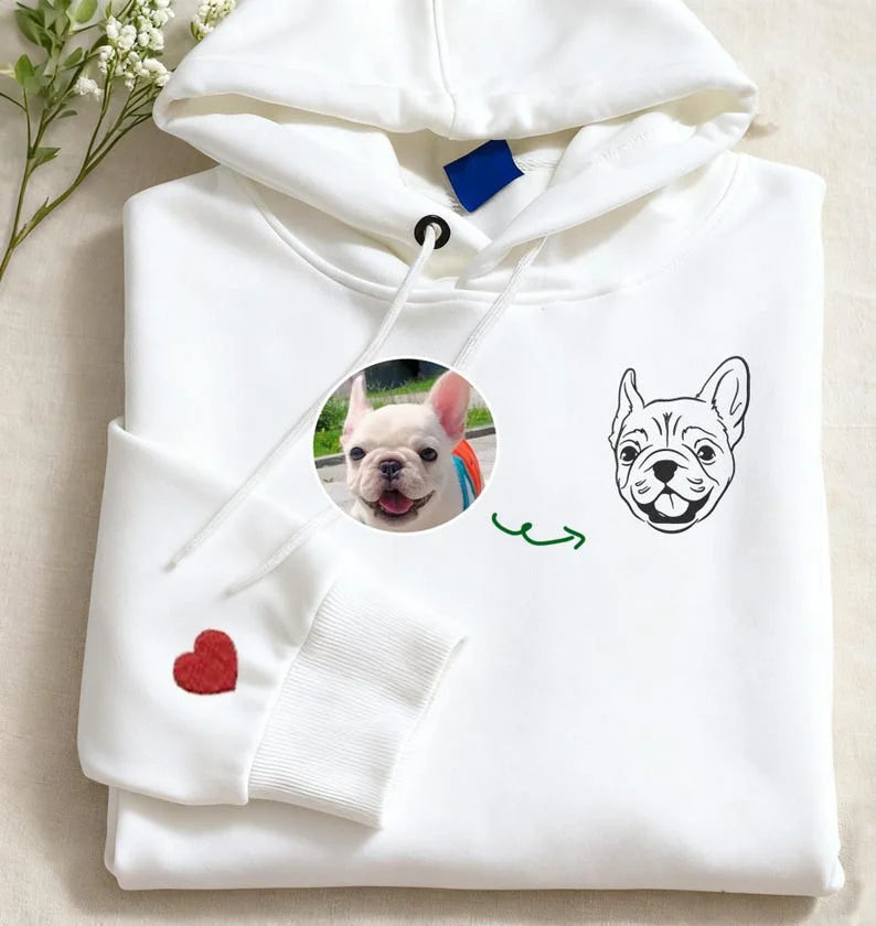 Ogni ricamo inizia con uno schizzo disegnato a mano dal nostro designer, catturando i tratti unici del tuo animale.