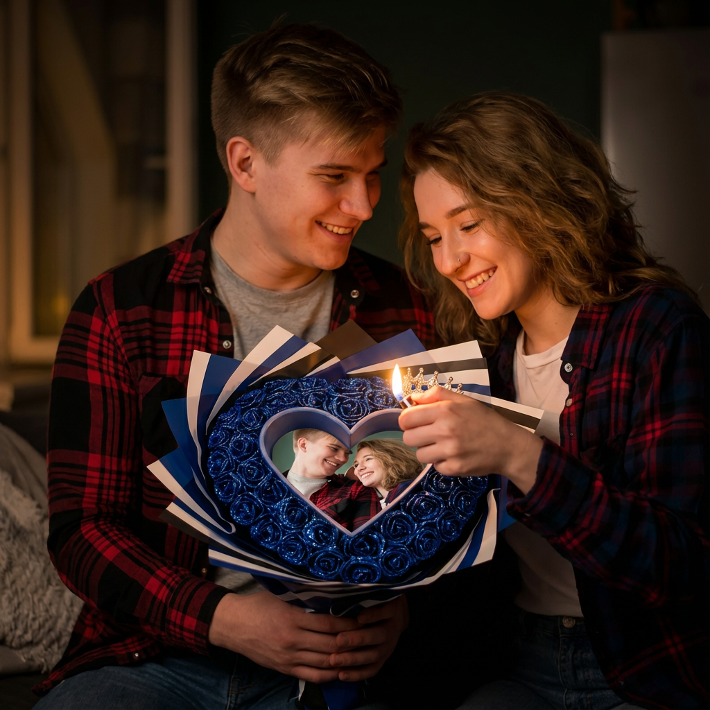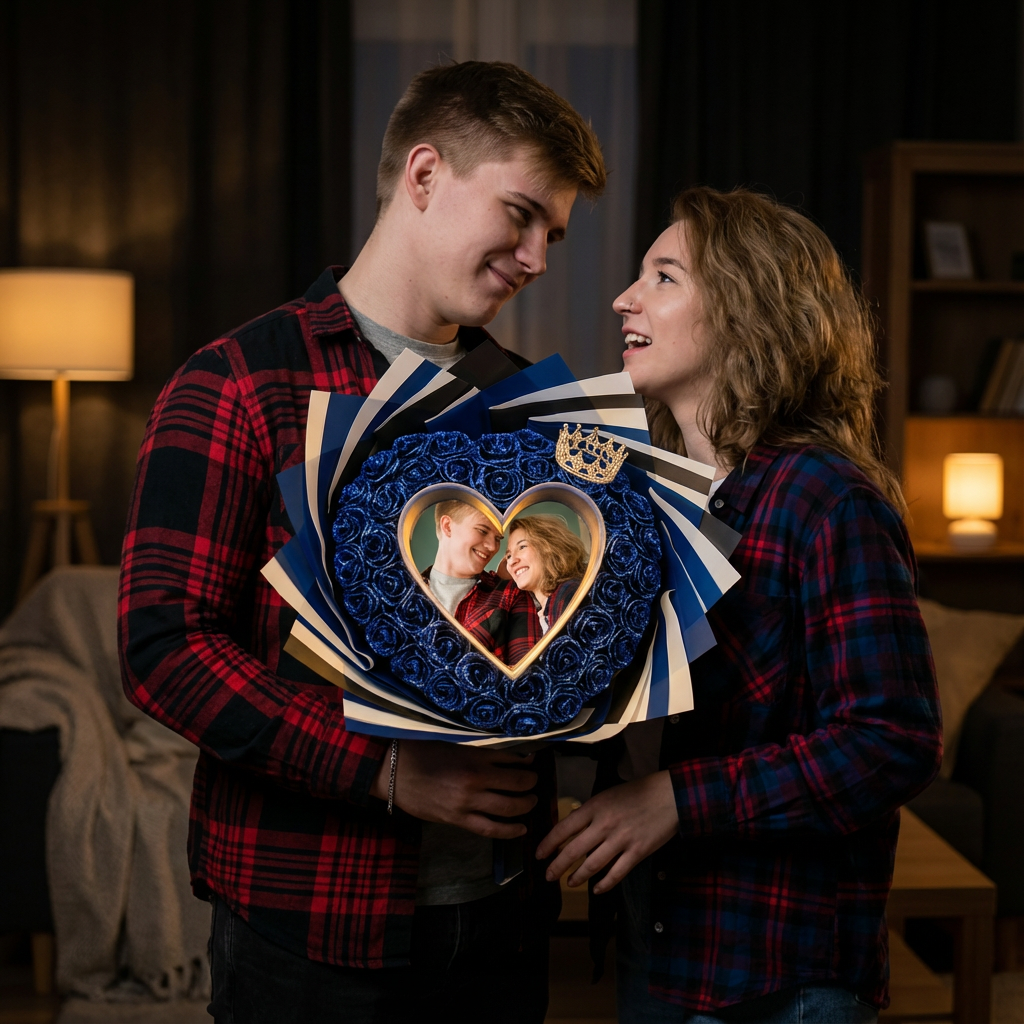 Doniunici - Felpa con cappuccio e foto di coppia personalizzata con numeri romani ricamati