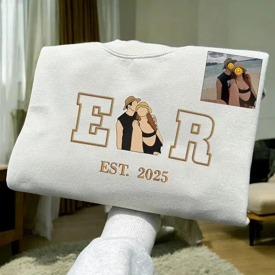 Felpa ricamata personalizzata Ritratto Lettore musicale Coppia Regalo di famiglia