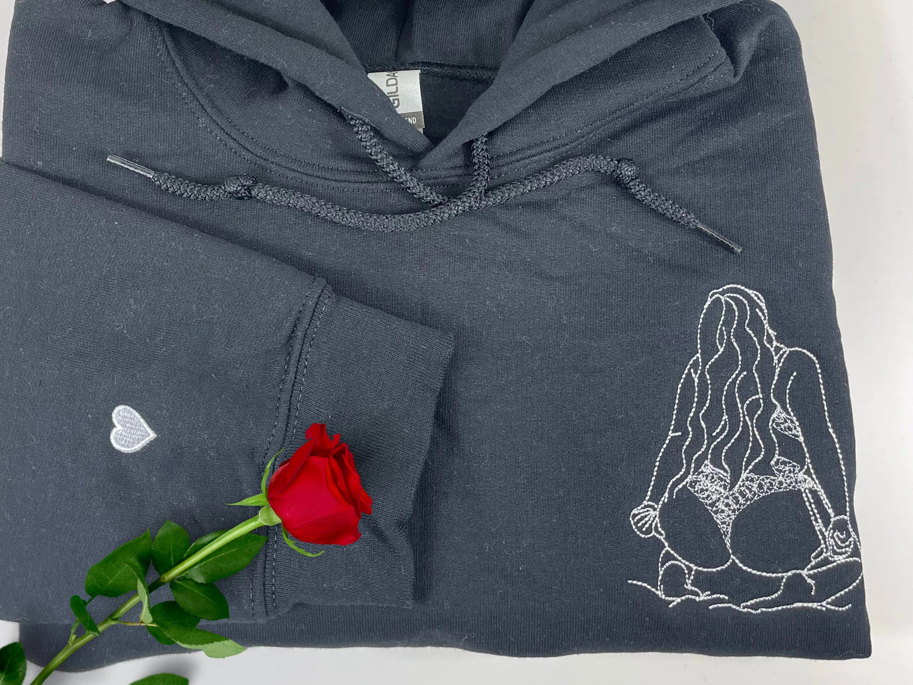Felpa con cappuccio piccante ricamata personalizzata con felpa con foto Line Art, regalo per coppie