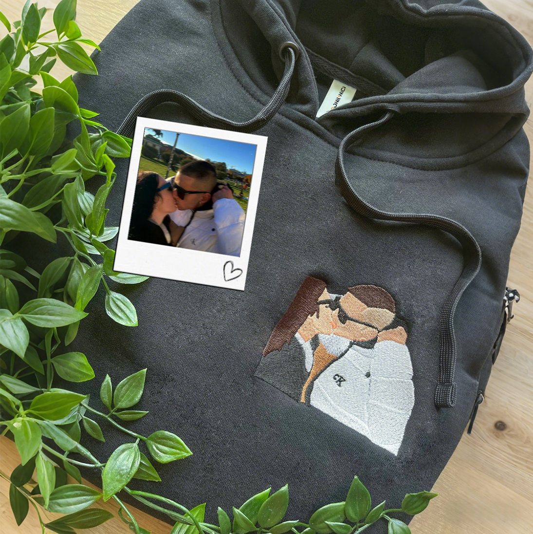 💖Felpa Personalizzata con Ritratto Ricamato per Coppie 💑 – Regalo Unico per San Valentino o Anniversario 🎁