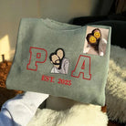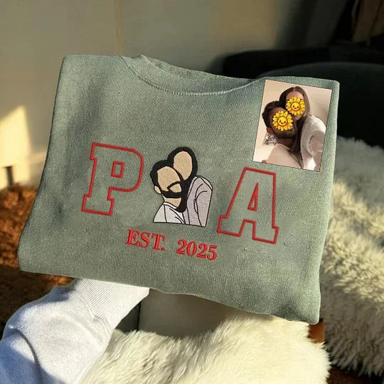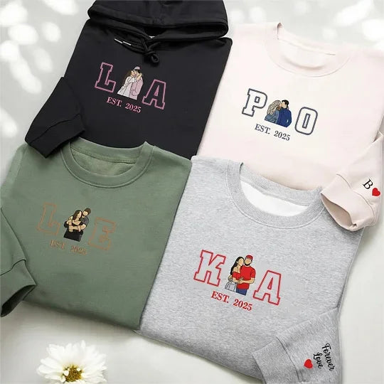 Felpe con cappuccio/T-shirt/magliette girocollo personalizzate Doniunici, ricamate con le foto dell'anno di fidanzamento della coppia e le loro iniziali.