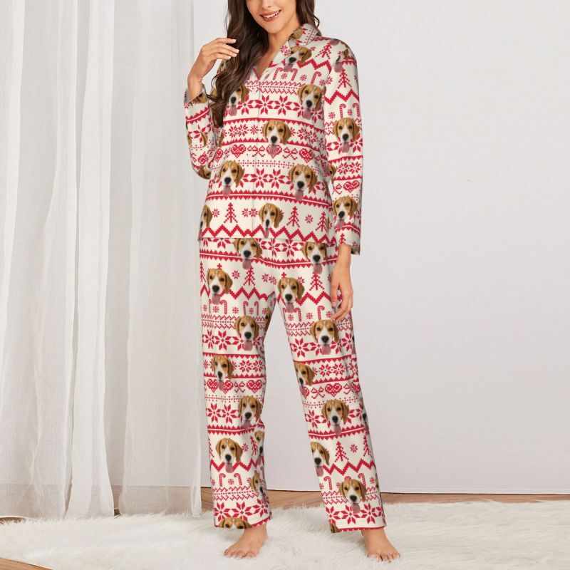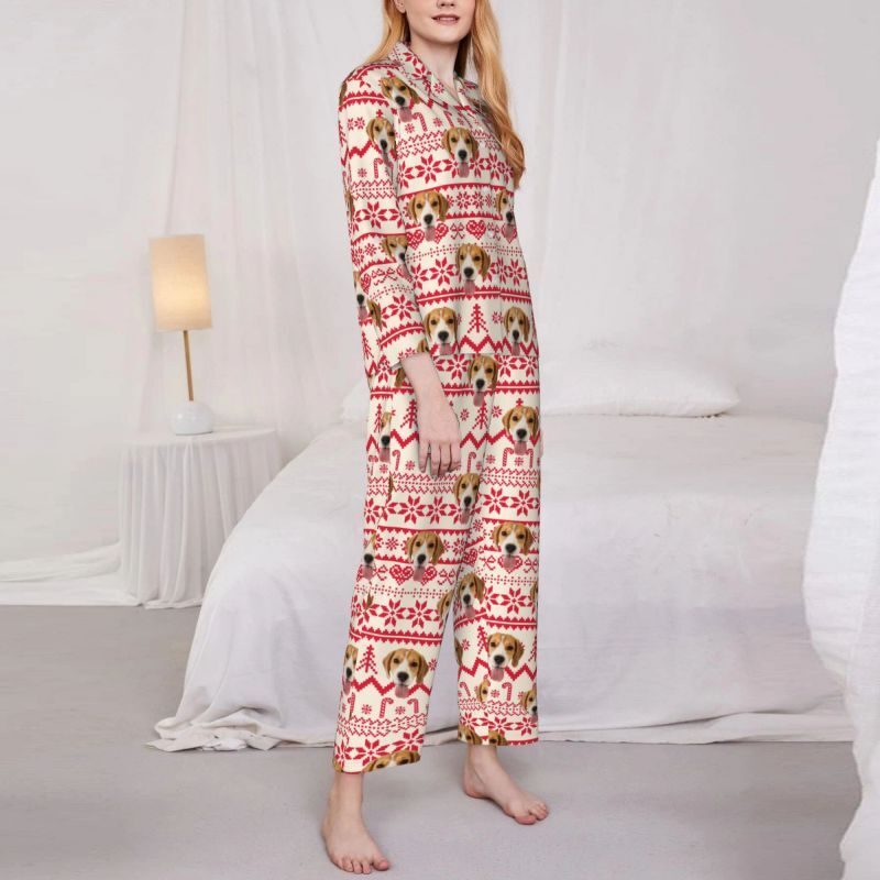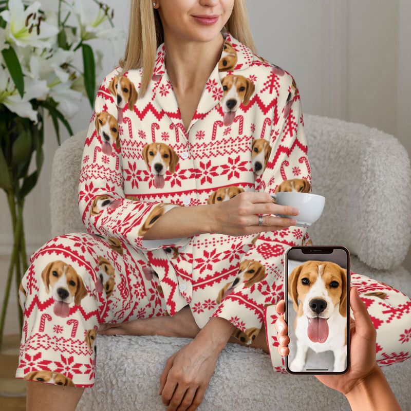 Pigiama personalizzato, foto personalizzata dell'animale domestico, umore di Natale, disegno del modello, regalo perfetto per la famiglia