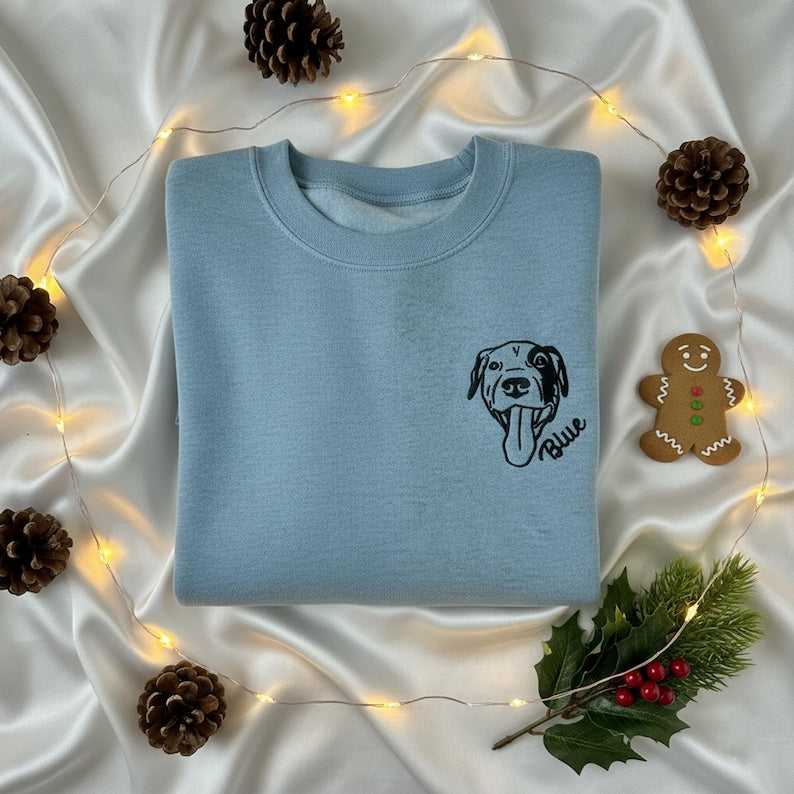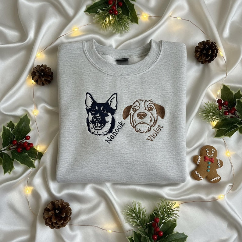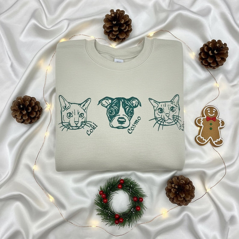Felpa Comfort Color con ricamo personalizzato del tuo animale domestico – Foto, nome e ritratto ricamato | Regalo perfetto per amanti di cani e gatti