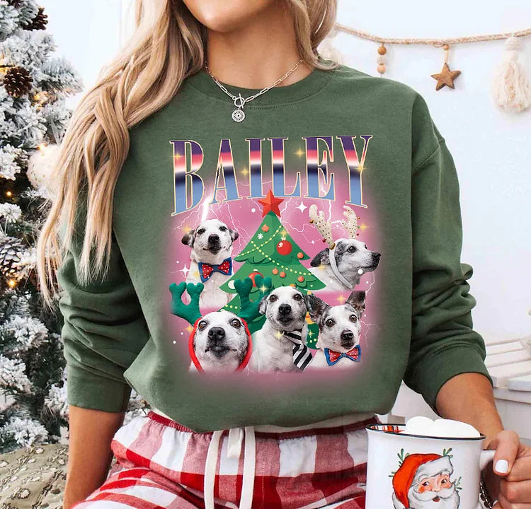 Festeggia le vacanze con stile con il tuo amico peloso! La nostra felpa, felpa con cappuccio o maglietta natalizia personalizzata con la faccia di cane presenta il viso carino del tuo animale domestico 🐶, rendendola l'abbigliamento perfetto per le feste 🎁. Che tu ti stia rilassando davanti al caminetto 🔥 o andando a una festa di Natale 🎉, questi esclusivi indumenti fotografici per animali domestici ti manterranno accogliente e alla moda.
