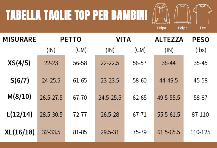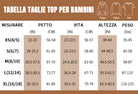 Tabella delle taglie: