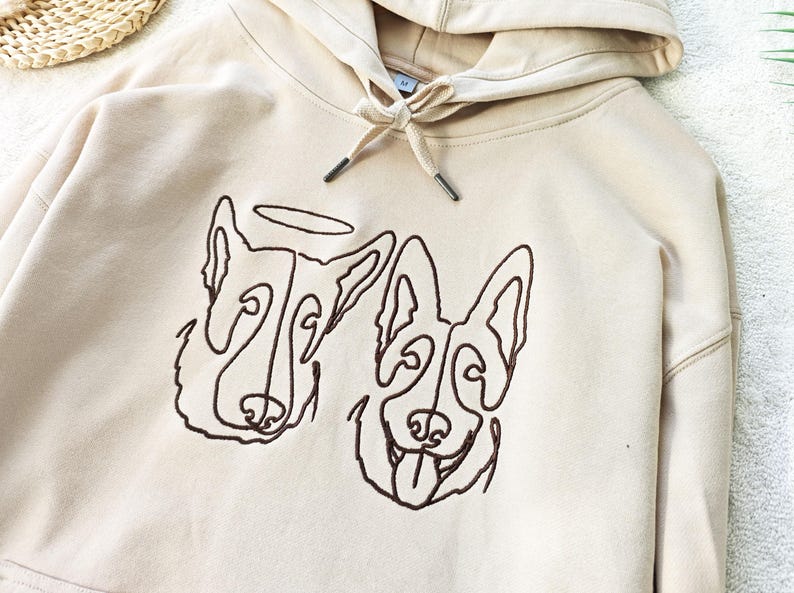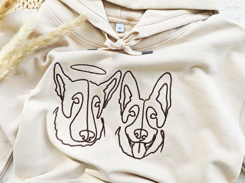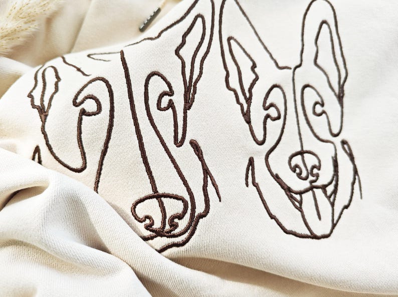 Felpa personalizzata con ricamo a linee del tuo animale | Ritratto outline da foto | Idea regalo per pet lovers