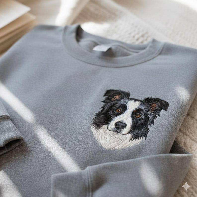 Festeggia il tuo amico peloso con una felpa o una maglietta ricamata unica nel suo genere! Carica semplicemente la foto del tuo animale domestico e i nostri abili artisti la trasformeranno in un ricamo splendidamente dettagliato del suo muso, abbinato al suo nome per un tocco personale in più.