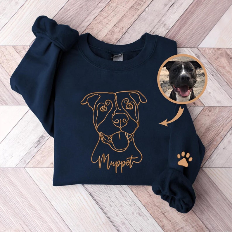 Felpa ricamata personalizzata con ritratto del tuo animale domestico | Foto e nome inclusi, idea regalo per amanti dei cani e gatti