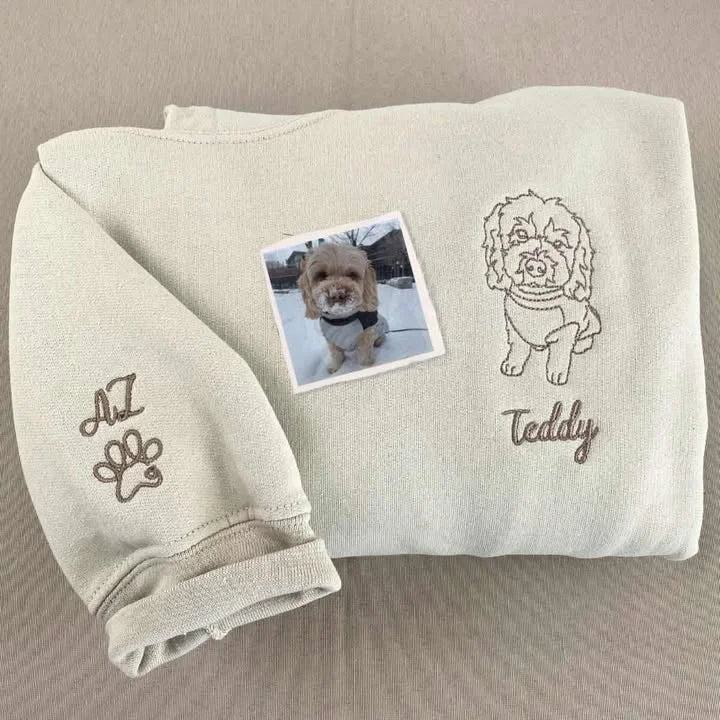 Felpe ricamate personalizzate, schizzi di animali domestici a figura intera ricamati