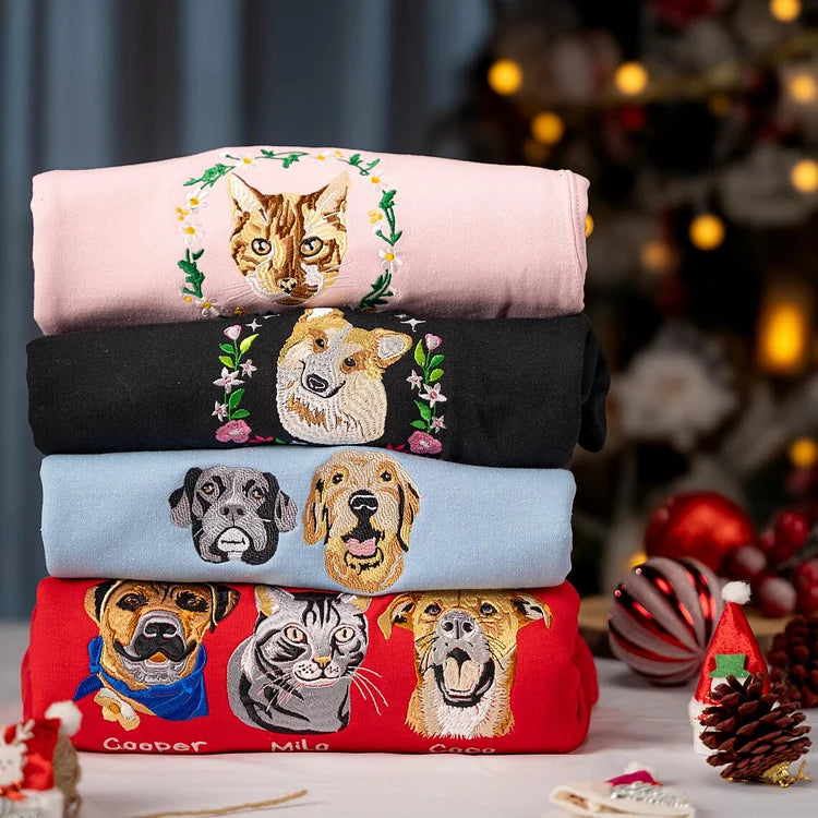 Celebra a tu peludo amigo con nuestra sudadera bordada personalizada para mascotas, ¡la manera perfecta de mostrar su personalidad y estilo únicos! Simplemente envíanos una foto de tu querida mascota y la transformaremos en un retrato bordado personalizado en una sudadera cómoda y de alta calidad.