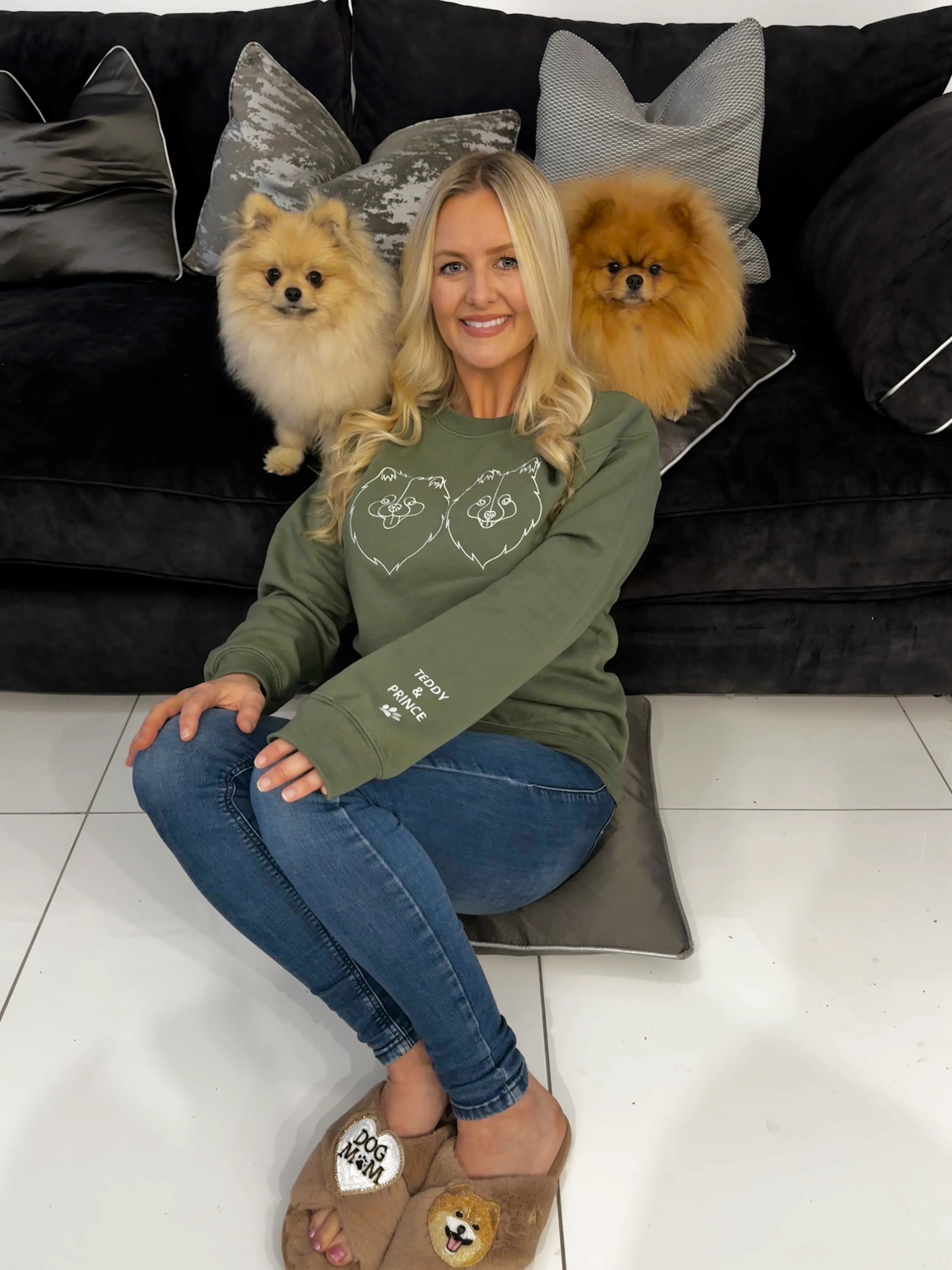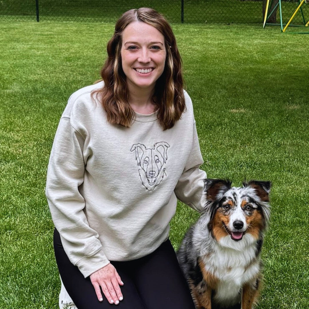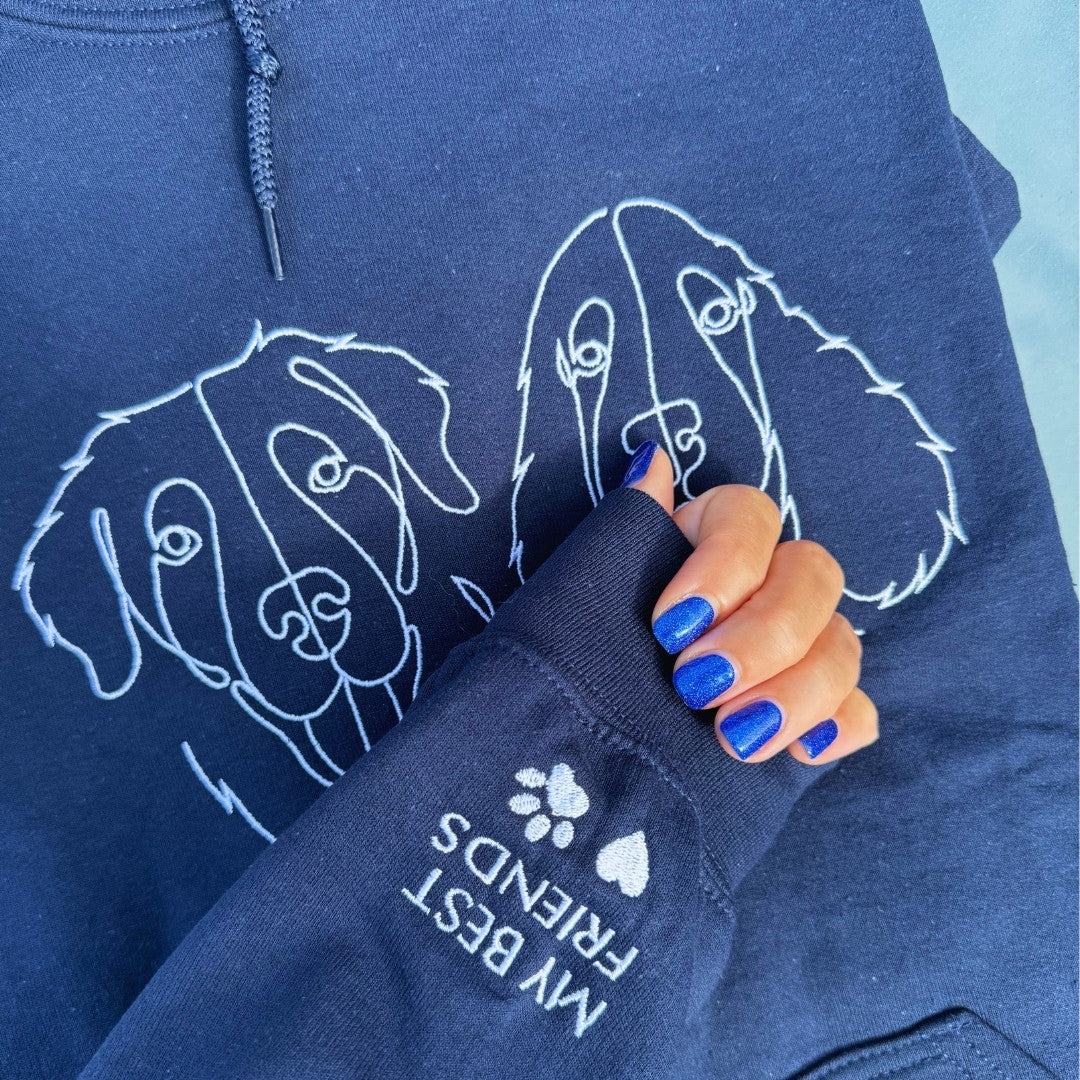 Sudadera única con el bordado de tu mascota: perfil y nombre personalizables