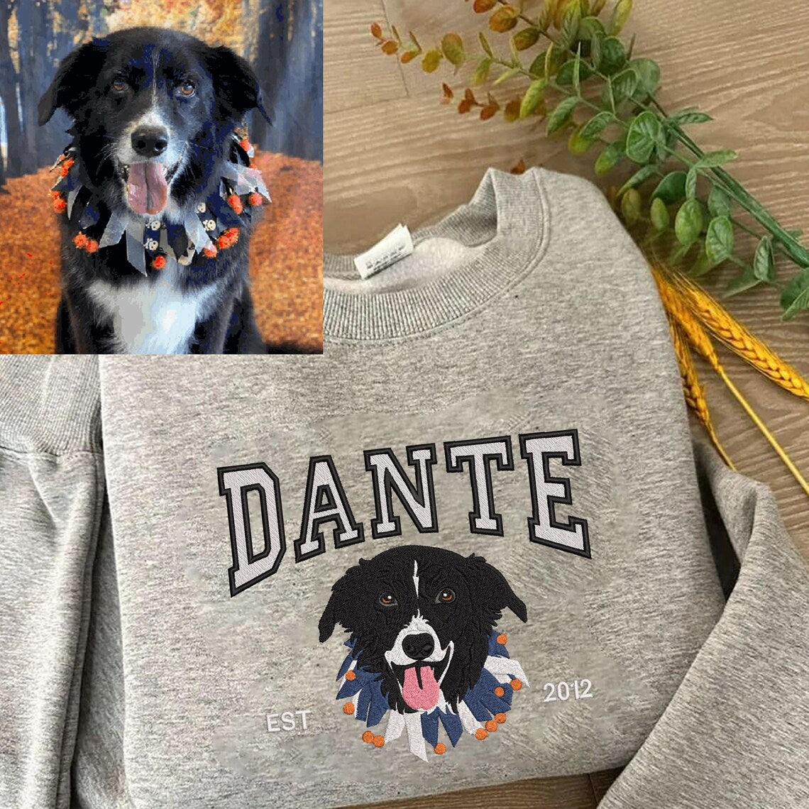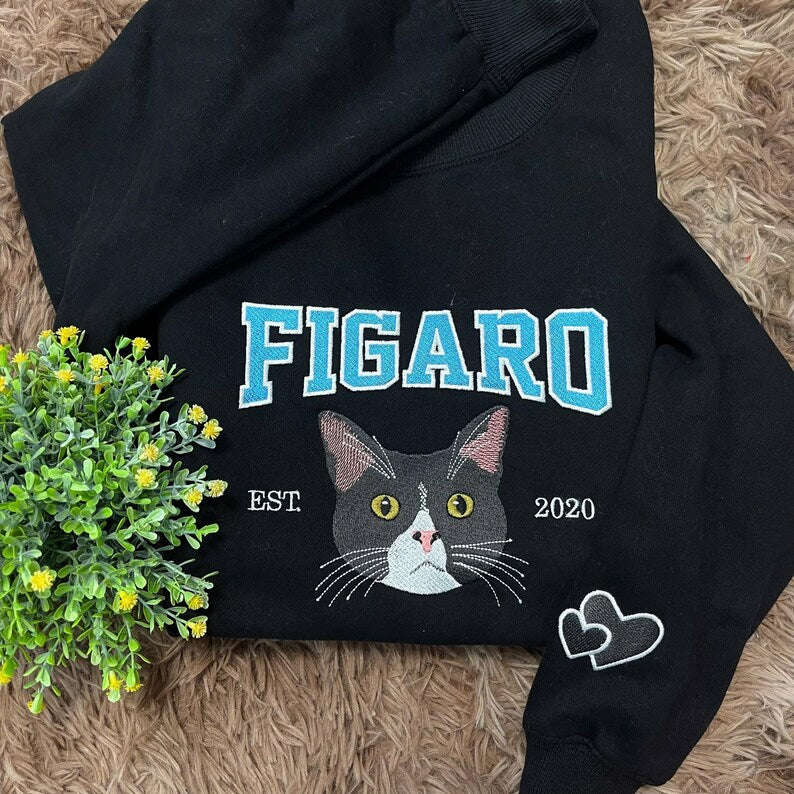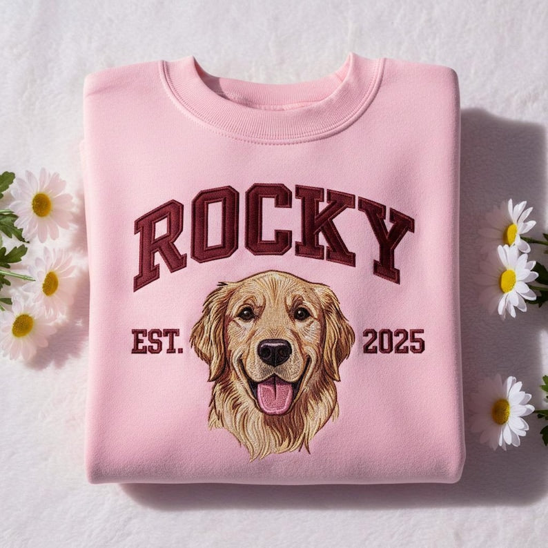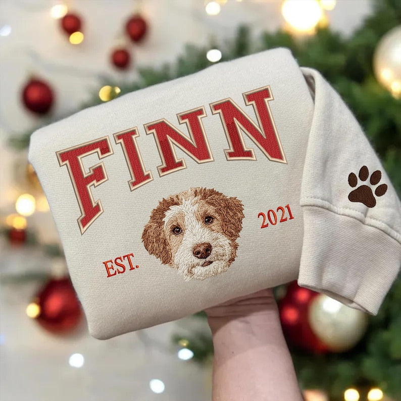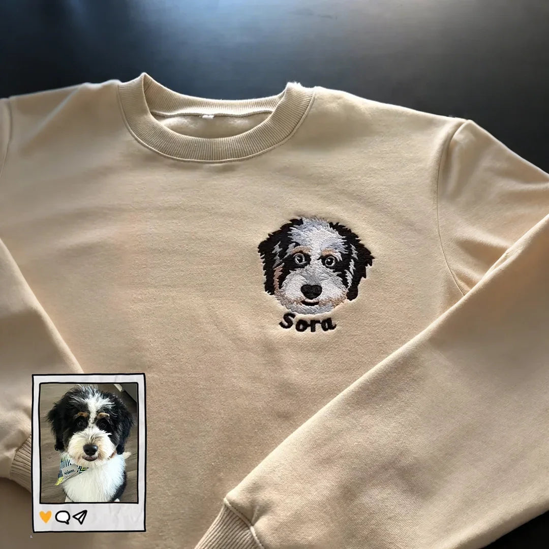 Sweat-shirt brodé personnalisé avec portrait et nom de l'animal de compagnie