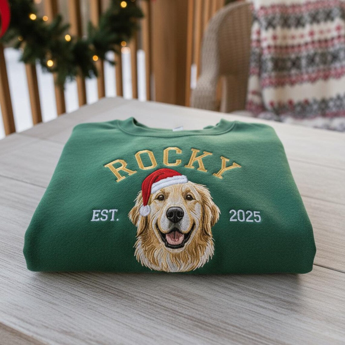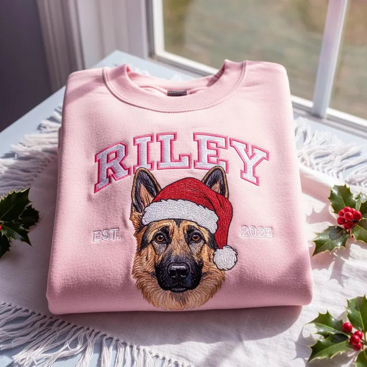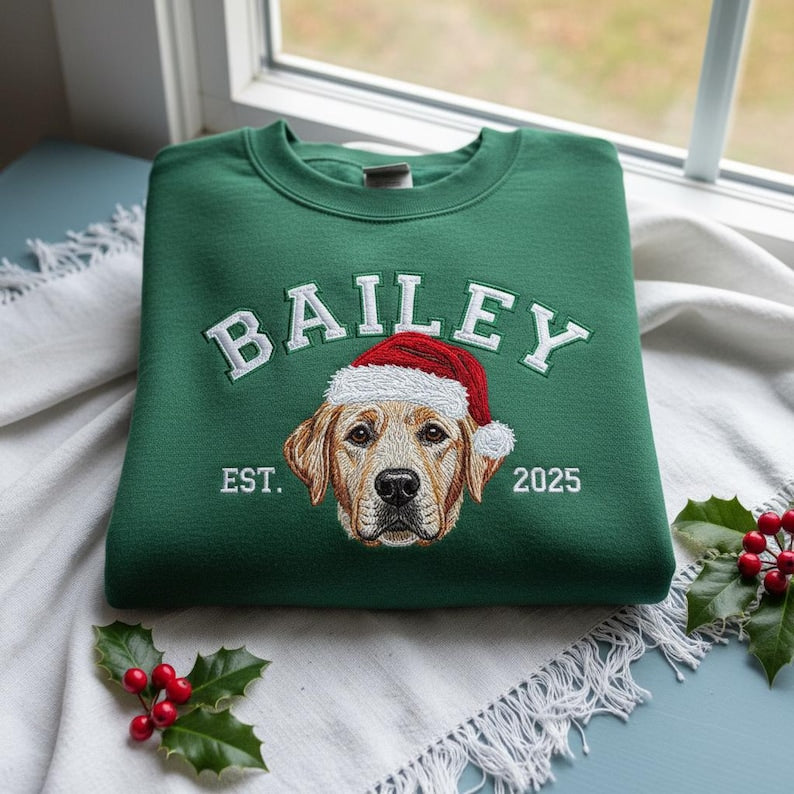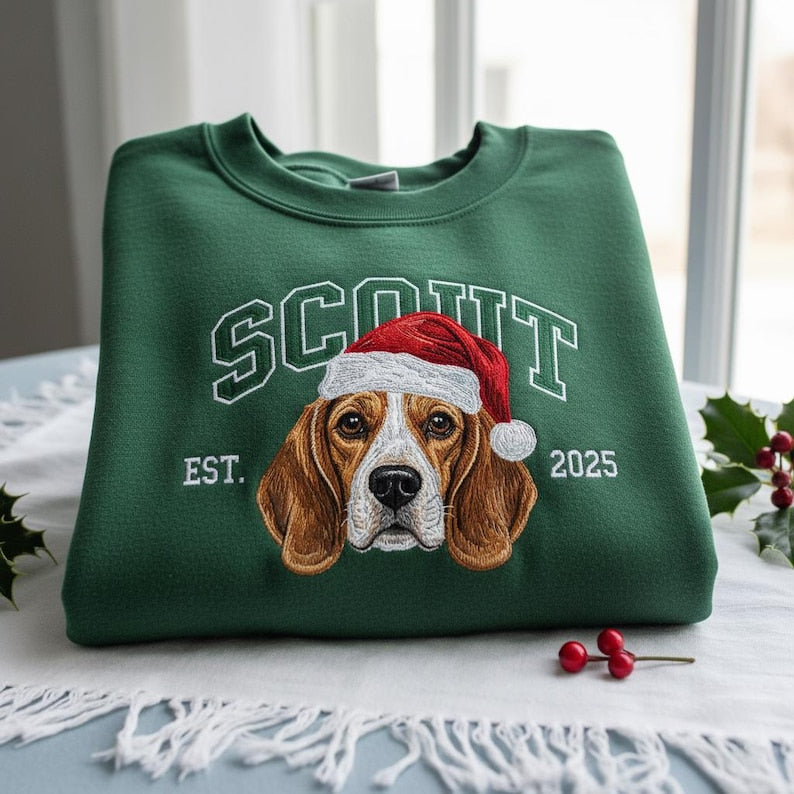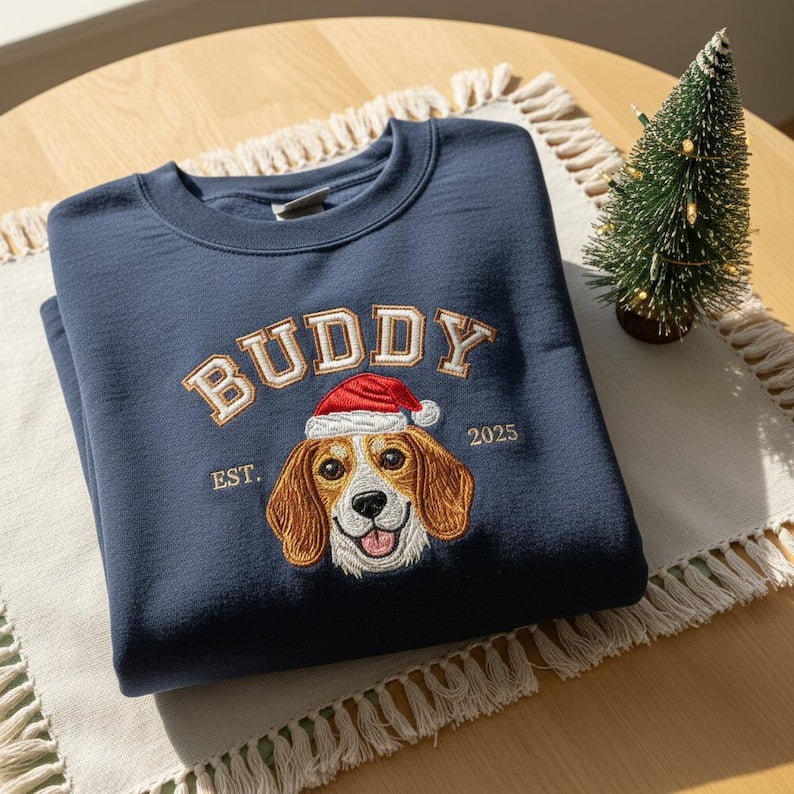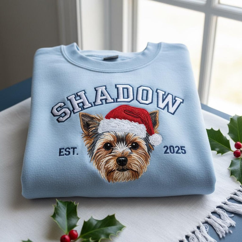 Sweat à capuche brodé personnalisé avec portrait de votre animal de compagnie 🎅🐾 – Transformez la photo de votre animal en un cadeau de Noël parfait