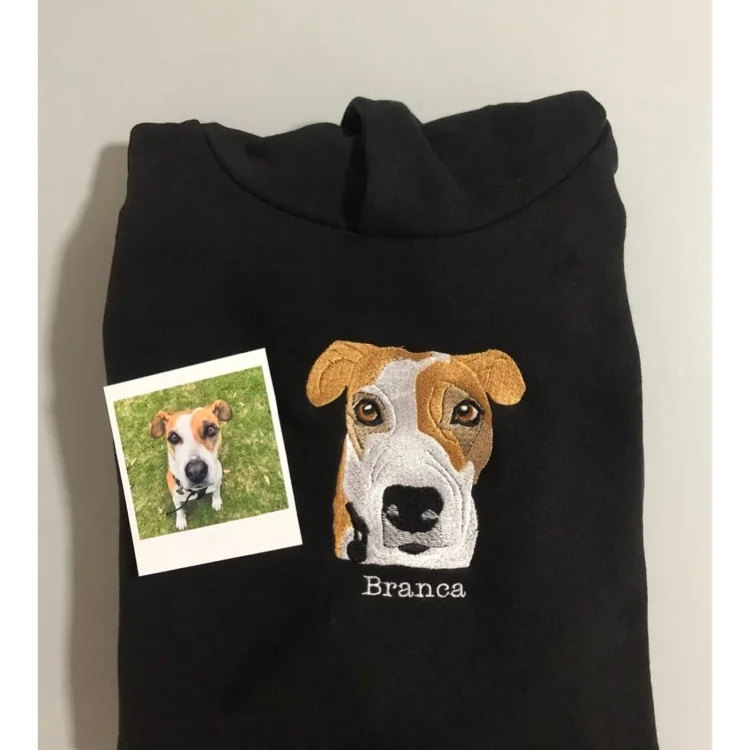 Sweat à capuche brodé personnalisé pour animaux de compagnie, avec la photo brodée de votre animal.