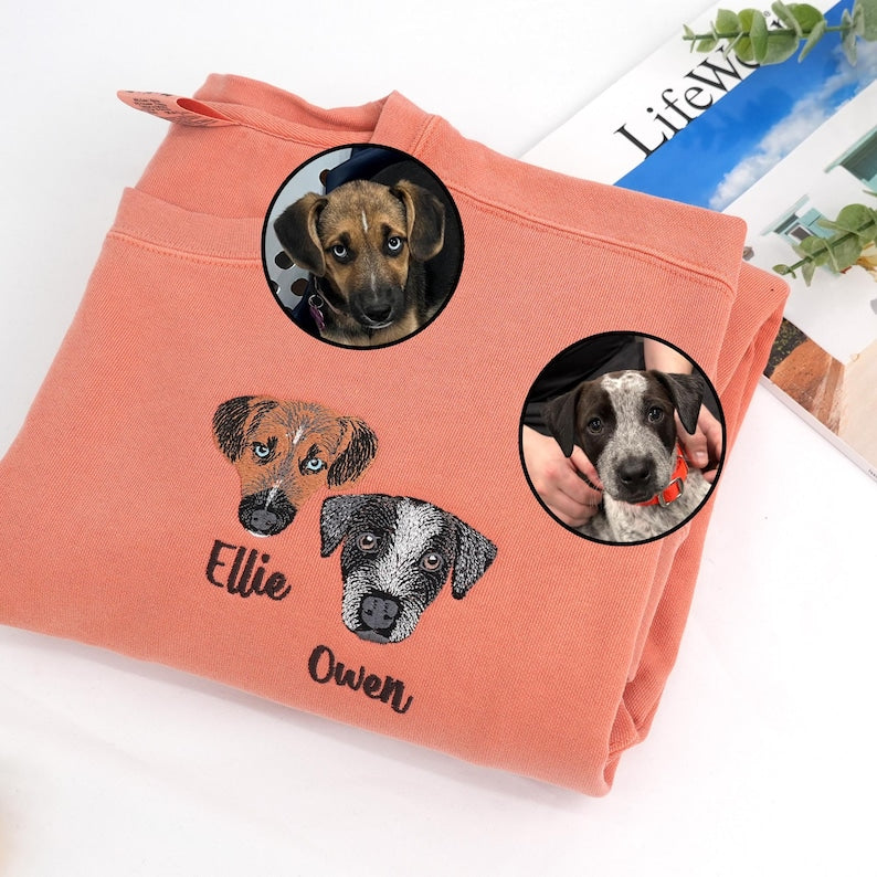 Sweat-shirt personnalisé avec broderie portrait de votre animal de compagnie