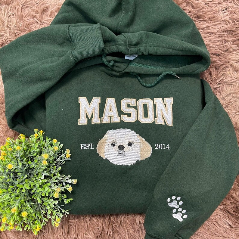 Sweat à capuche brodé personnalisé pour animaux de compagnie | Sweat à capuche personnalisé avec photo et nom | Sweat à capuche brodé | Cadeau personnalisé | Cadeaux pour chiens