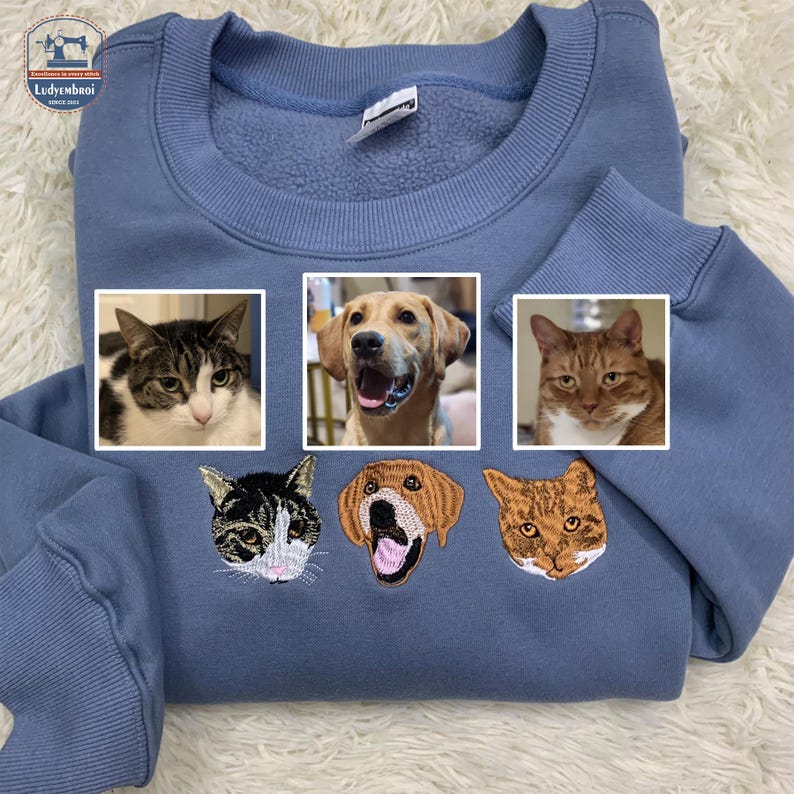 Ce t-shirt arbore d'adorables photos brodées de vos animaux de compagnie. Choisissez de 1 à 3 animaux et téléchargez leurs photos pour personnaliser leurs noms. Une façon idéale de montrer leur mignonnerie et d'exprimer votre amour pour vos compagnons à quatre pattes.