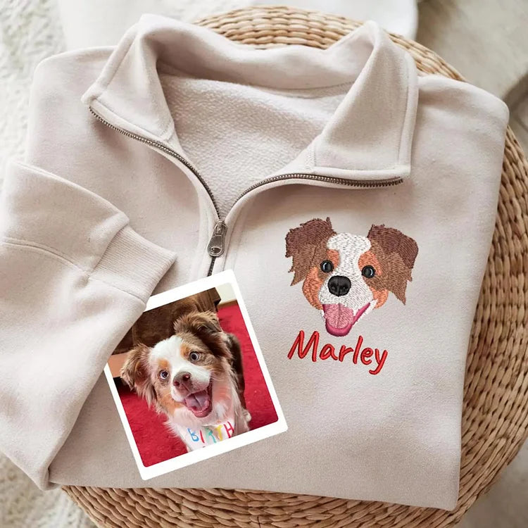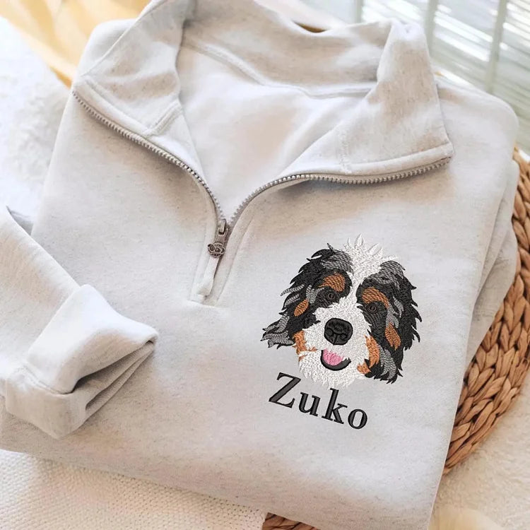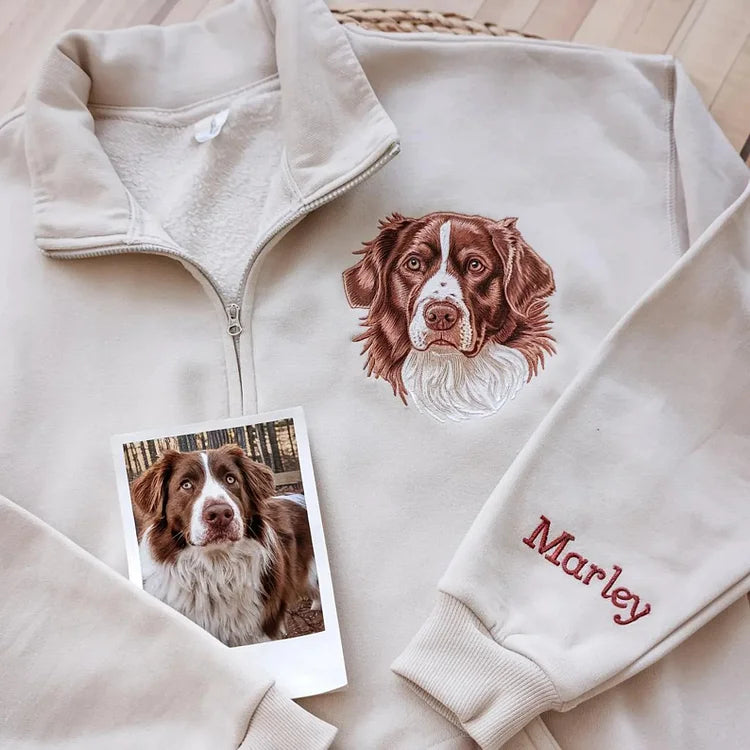 ✨ Sweat-shirt à fermeture éclair quart de tour avec broderie personnalisée du portrait de votre animal de compagnie ✨