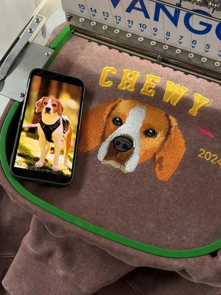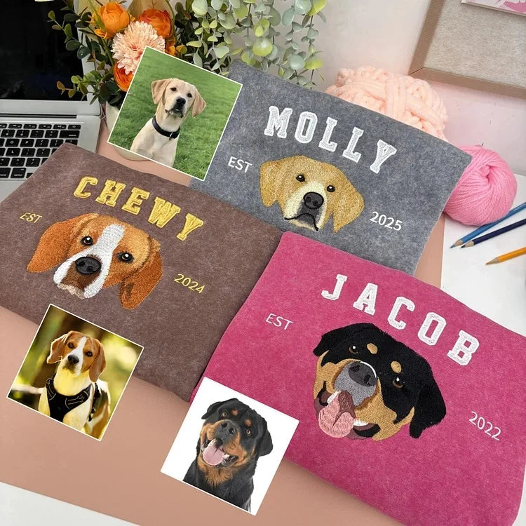 Chaque pièce est brodée sur mesure avec la photo de votre animal de compagnie, créant ainsi un hommage doux, portable et d'inspiration vintage, parfait pour célébrer l'amour au quotidien.