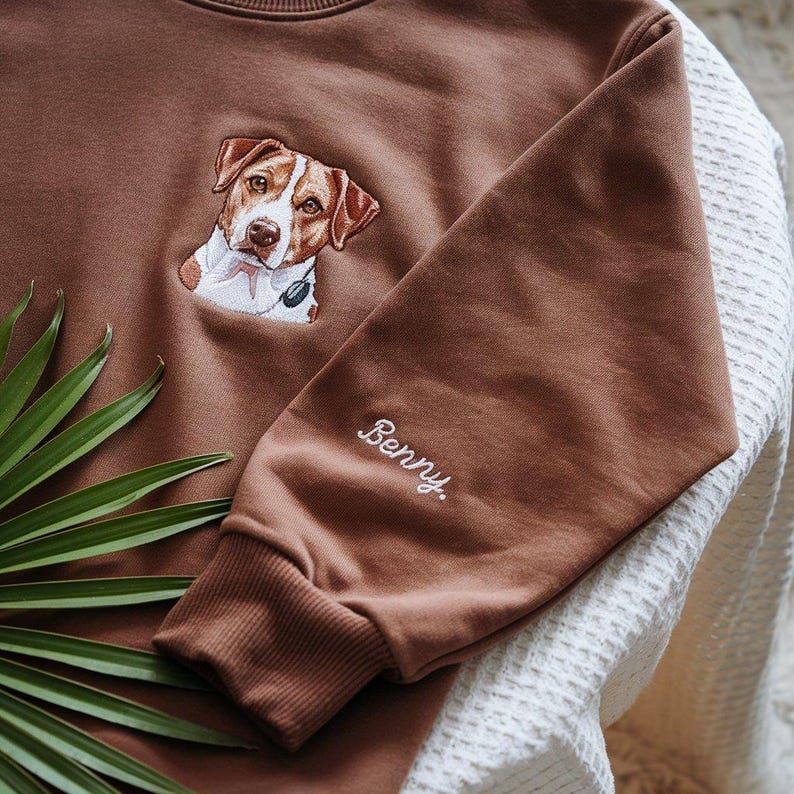 Festeggia il tuo amico peloso con una felpa o una maglietta ricamata unica nel suo genere! Carica semplicemente la foto del tuo animale domestico e i nostri abili artisti la trasformeranno in un ricamo splendidamente dettagliato del suo muso, abbinato al suo nome per un tocco personale in più.