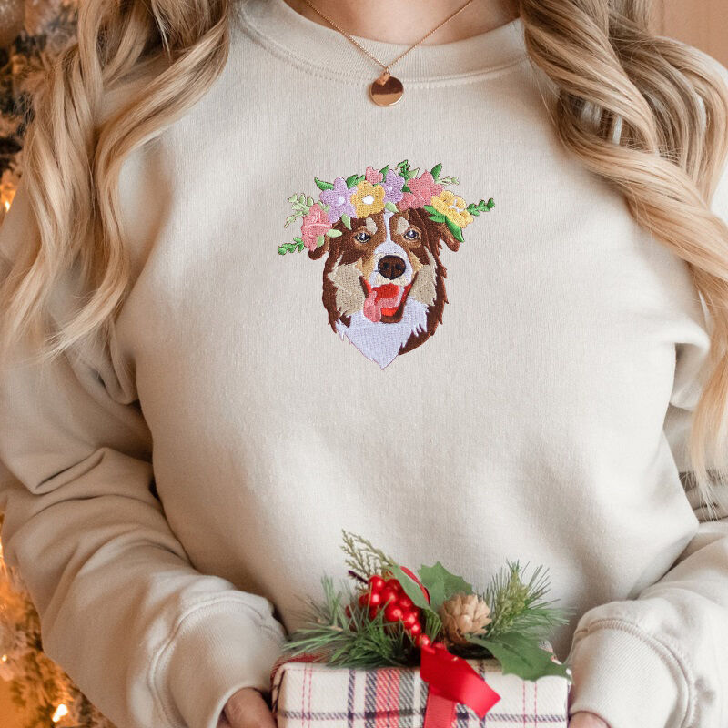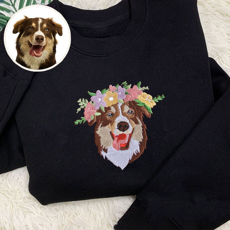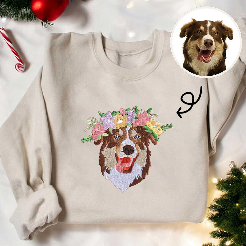 Felpa personalizzata con foto personalizzata dell'animale domestico ricamata, grazioso design a ghirlanda, regalo squisito per gli amanti degli animali domestici